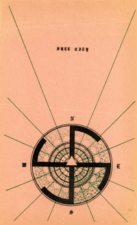 Cat. No.: FC-1-001 Full record BibCit: n.d., ca. 10/1/1967. Broadside. Legal size. 12 sheets (7 Bs, 5 bS). San Francisco: Free City Collective. Collection: SOLA-o; SS-o (MH). Abstract: This is the cover sheet of two bound sets of 8-1/2" x 14" sheets printed on one or two sides that were each titled "Free City." The cover illustration depicts what the Diggers described as a Hopi "Running Man" symbol against a Sun-Ray mandala. The inside sheets contain news of the Free community, poetic pronouncements, and philosophical diatribes.