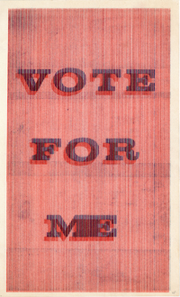 Cat. No.: FC-1-004 Full record BibCit: Broadside. San Francisco: Free City Collective. Abstract: The broadside inverts the traditional campaign slogan through a psychedelic rendering that parodies electoral politics. Stripped of any candidate or program, “Vote for Me” becomes a visual taunt, mocking the empty forms of representation.