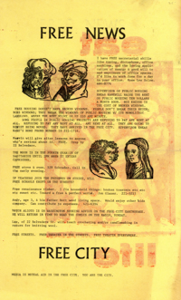 Note: The idea of this sheet predates the first Free City News sheets by several weeks. (I have never been able to figure out the dating of this set of Free City, except that it was the second set published by the Free City Collective.)