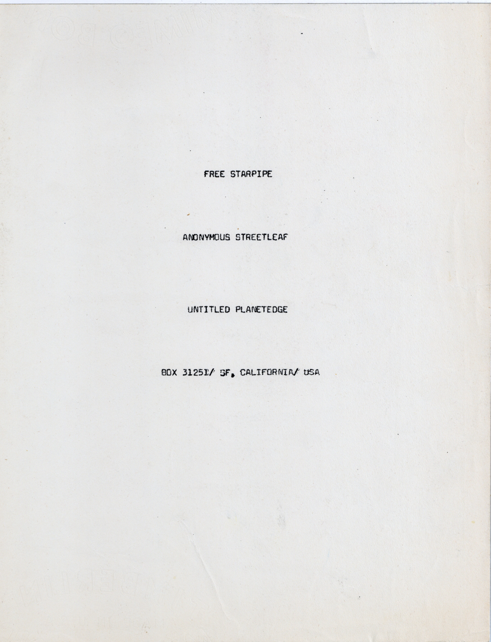 Cat. No.: FC-OTHER-043_typescript Full record BibCit: San Francisco: Free City Collective.
