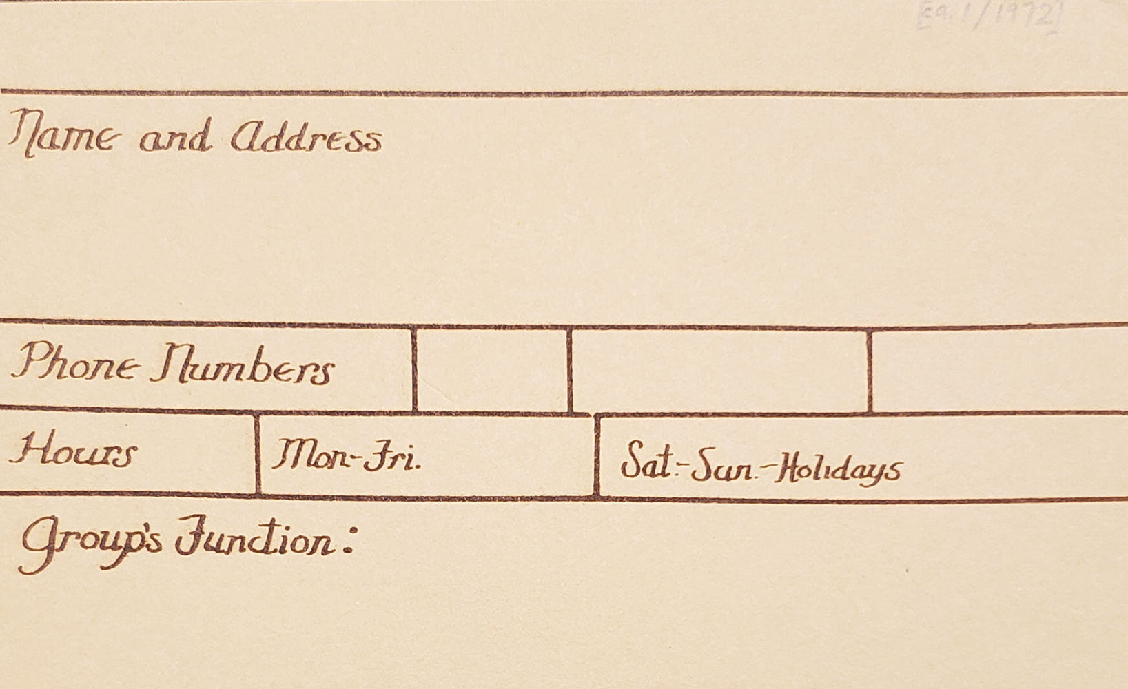 | Switchboard address card.