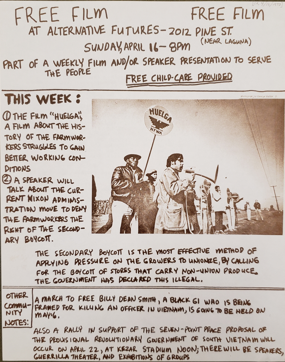 Cat. No.: FPS-231 Full record BibCit: 4/1/1972. Broadside. San Francisco: Free Print Shop. Collection: o-FPS | o-CHS.