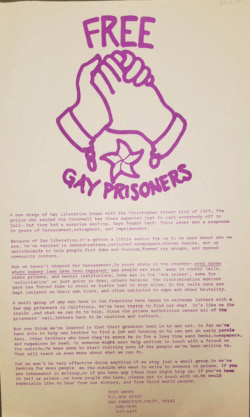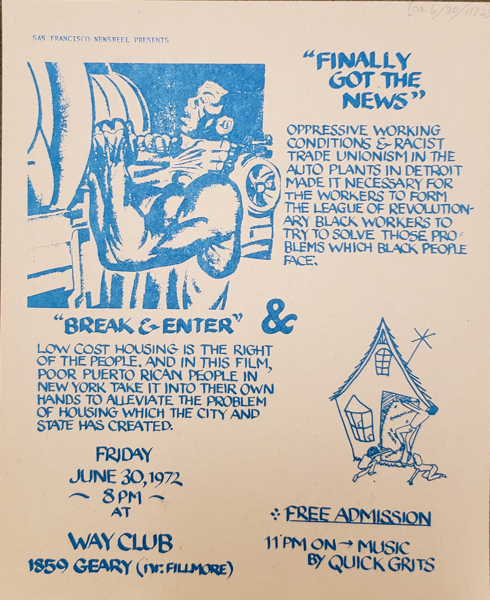 Cat. No.: FPS-267 Full record BibCit: ca. 6/2/1972 6/2/1972. Broadside. San Francisco: Free Print Shop. Collection: o-FPS | o-CHS.