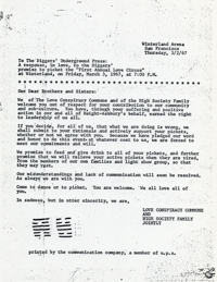 | Winterland Arena//San Francisco//Thursday 3/2/67//To The Diggers' Underground Press:.