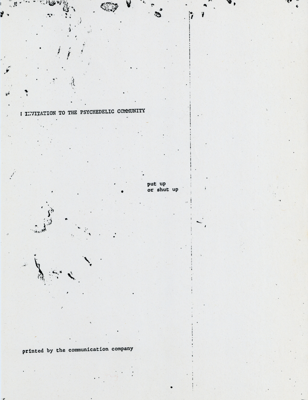 Cat. No.: CC-076 Full record BibCit: February 1967. Broadside. Letter size. San Francisco: Communication Company. Imprint: Communication Company Member U.P.S.. Collection: SS-x(M) | SOLA-x(SS).