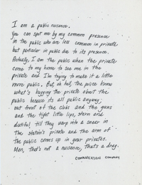 Cat. No.: CC-092a Full record BibCit: 4/8/1967. Broadsheet. Letter size. San Francisco: Communication Company. Collection: SS-x(m) | SOLA-x(ss). Abstract: R.s.: "passive emotions/ ...". Prose/poetry statement.