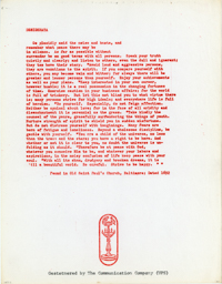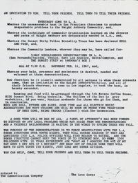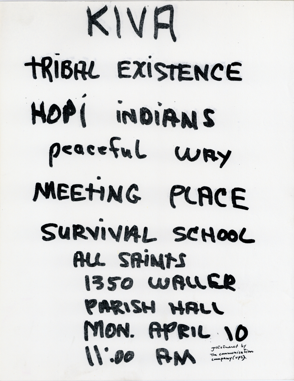 Cat. No.: CC-159 Full record BibCit: N.d., ca. 4/10/1967. Broadside. Letter size. San Francisco: Communication Company. Collection: SS-x(B) | SOLA-x(SS). Abstract: Announces a meeting at All Saints Parish Hall, Mon. Apr. 10.