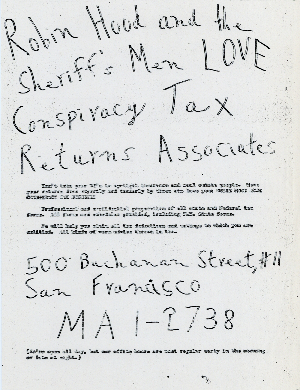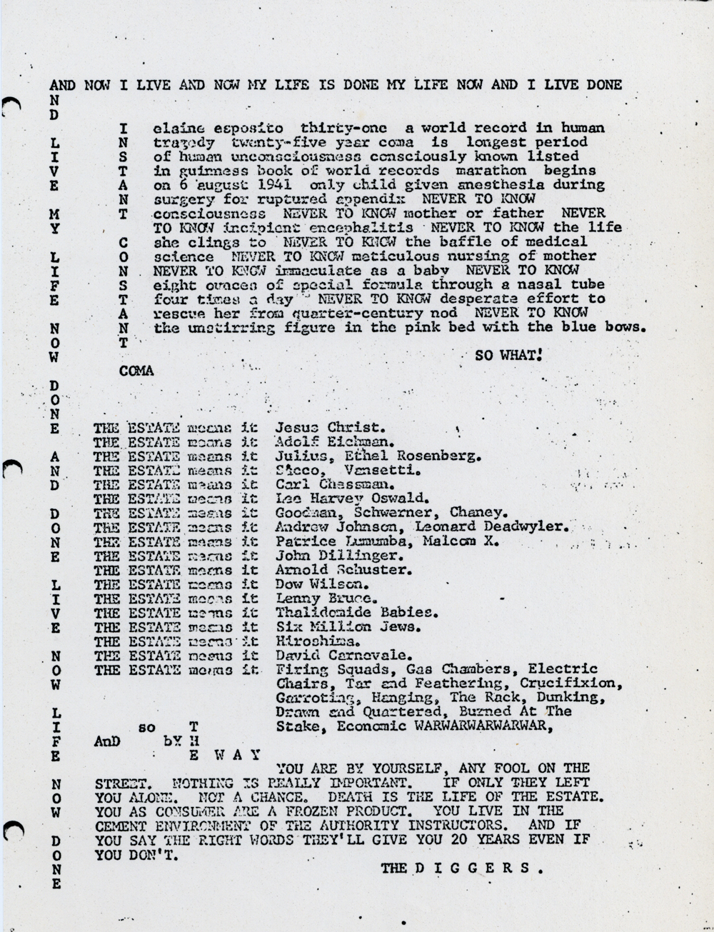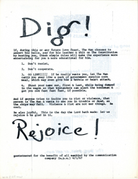 Cat. No.: CC-176b Full record BibCit: Broadsheet. Letter size. San Francisco: Communication Company. Collection: SS-o(M)o? | SOLA-x(SS). Abstract: This side and R.s. are reprints of two early digger sheets.