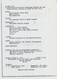 Cat. No.: CC-160b Full record BibCit: Broadsheet. Letter size. San Francisco: Communication Company. Collection: SS-x(B) | SOLA-x(SS). Abstract: Cont'd from other side. Words to Krishna chants.