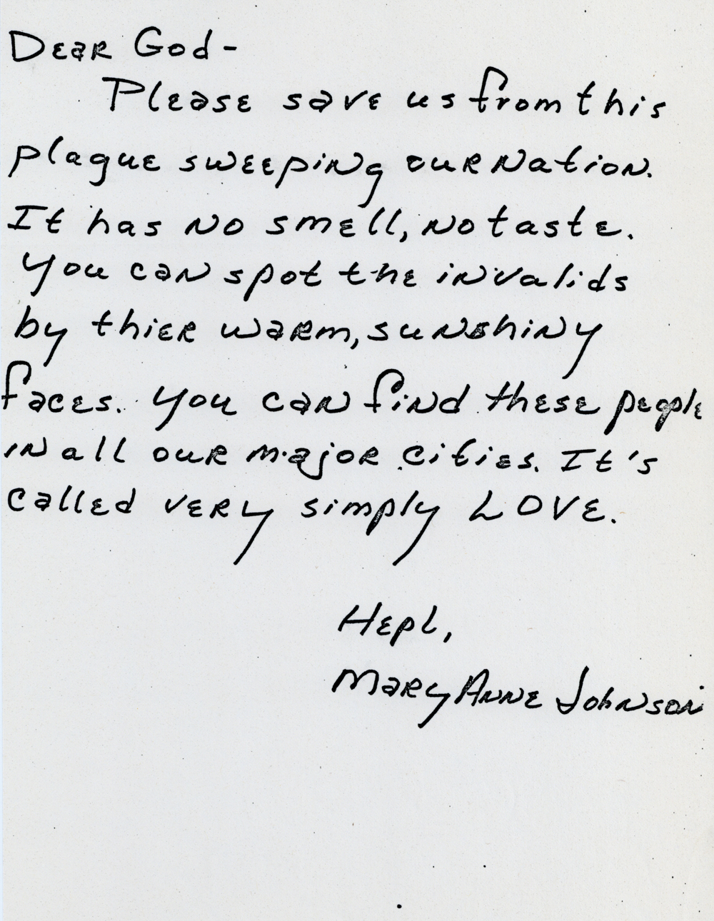 Cat. No.: CC-171 Full record BibCit: Broadside. Letter size. San Francisco: ?. Collection: SS-x(M) | SOLA-x(SS). Abstract: Signed, "Mary Anne Johnson." Note: no Com/Co imprint.