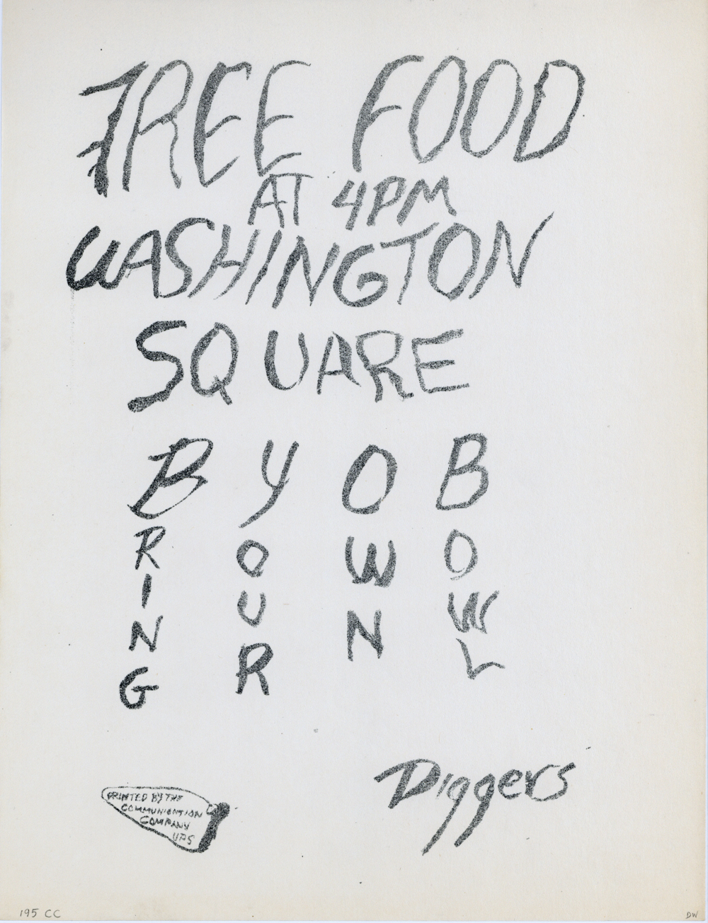 Cat. No.: CC-195 Full record BibCit: Broadside. Letter size. San Francisco: Communication Company. Collection: SOLA-o(DW). Abstract: Title is complete text. Signed, "Diggers."