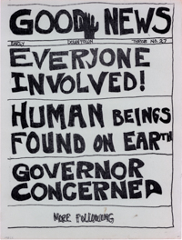 Cat. No.: CC-198 Full record BibCit: Broadside. Letter size. San Francisco: Communication Company. Collation: Gr Pa.. Collection: SOLA-o(DW). Abstract: Good news: "Human beings found on earth. Governor concerned."