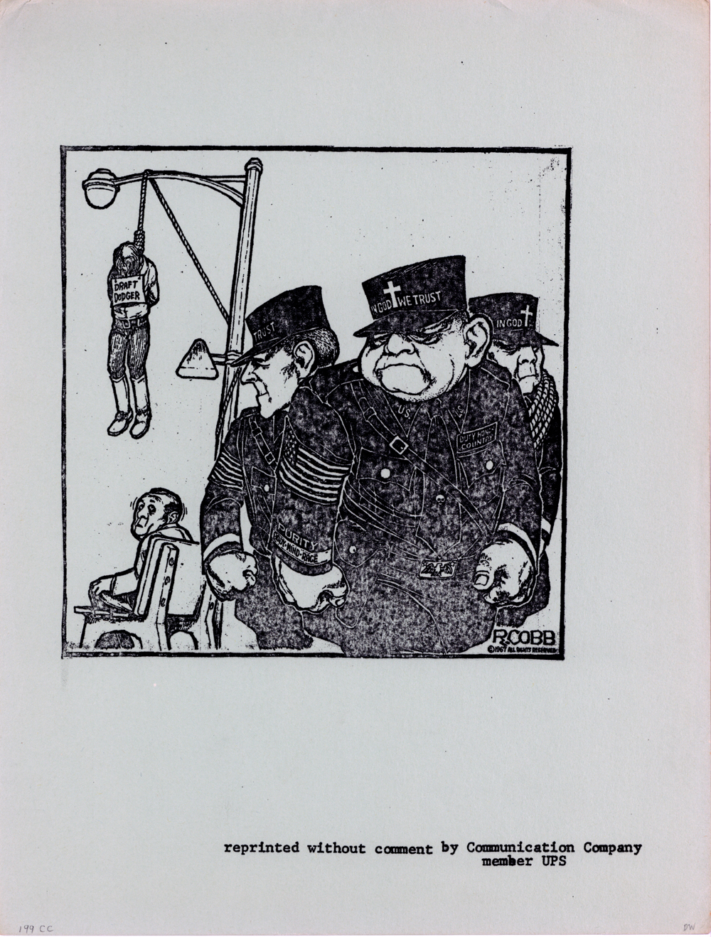 Cat. No.: CC-199 Full record BibCit: Broadside. Letter size. San Francisco: Communication Company. Collation: Gr Pa.. Collection: SOLA-o(DW). Abstract: "Reprinted without comment by Communication Company/member UPS."